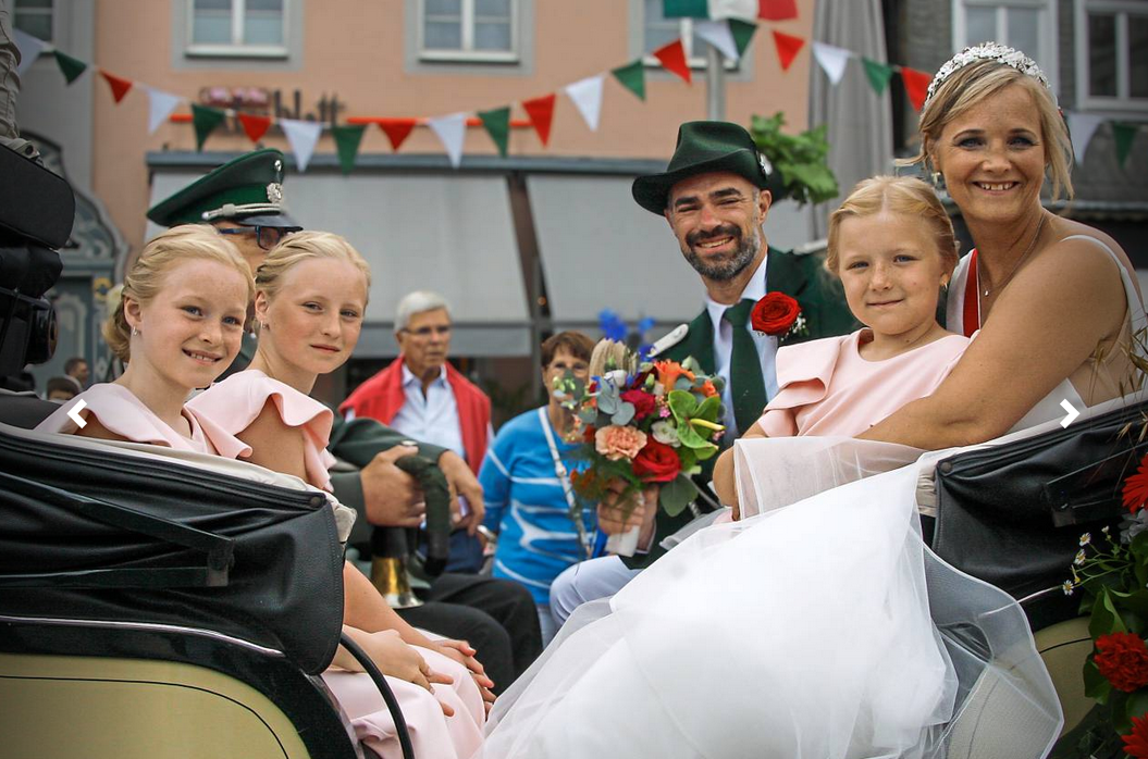 Zahlreiche Besucher hatten sich eingefunden, um das traditionelle Ereignis, an dem auch viele Gastvereine teilnahmen, zu erleben. Den strahlenden Mittelpunkt bildete das Königspaar mit seinem Hofstaat. Königin Susanne Mütherich zog in ihrer blütenweißen Robe aus Satin und Chiffon alle Blicke auf sich.