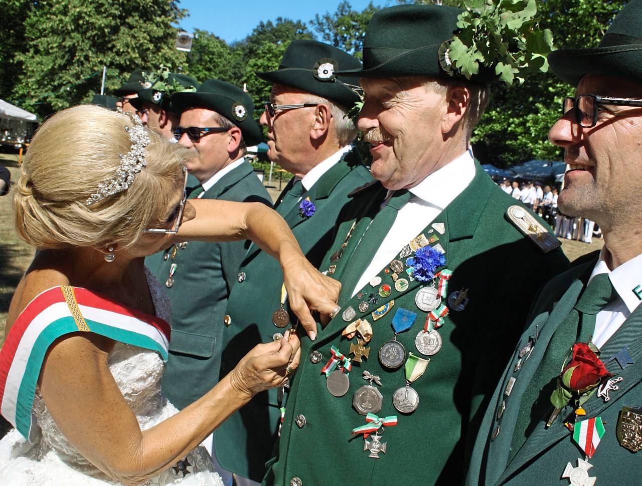 Den Orden für besondere Verdienste des Sauerländer Schützenbundes bekamen Heinrich Giebeler und Uwe Stedtfeld angesteckt. Für Verdienste wurden am Sonntagnachmittag bei strahlendem Sonnenschein vor hunderten Zuschauern geehrt: Rainer Staats, Ulrich Pütt, Marcus Grüne, Thomas Neuschulz, Carwi Heinze und Volker Lahme.