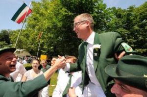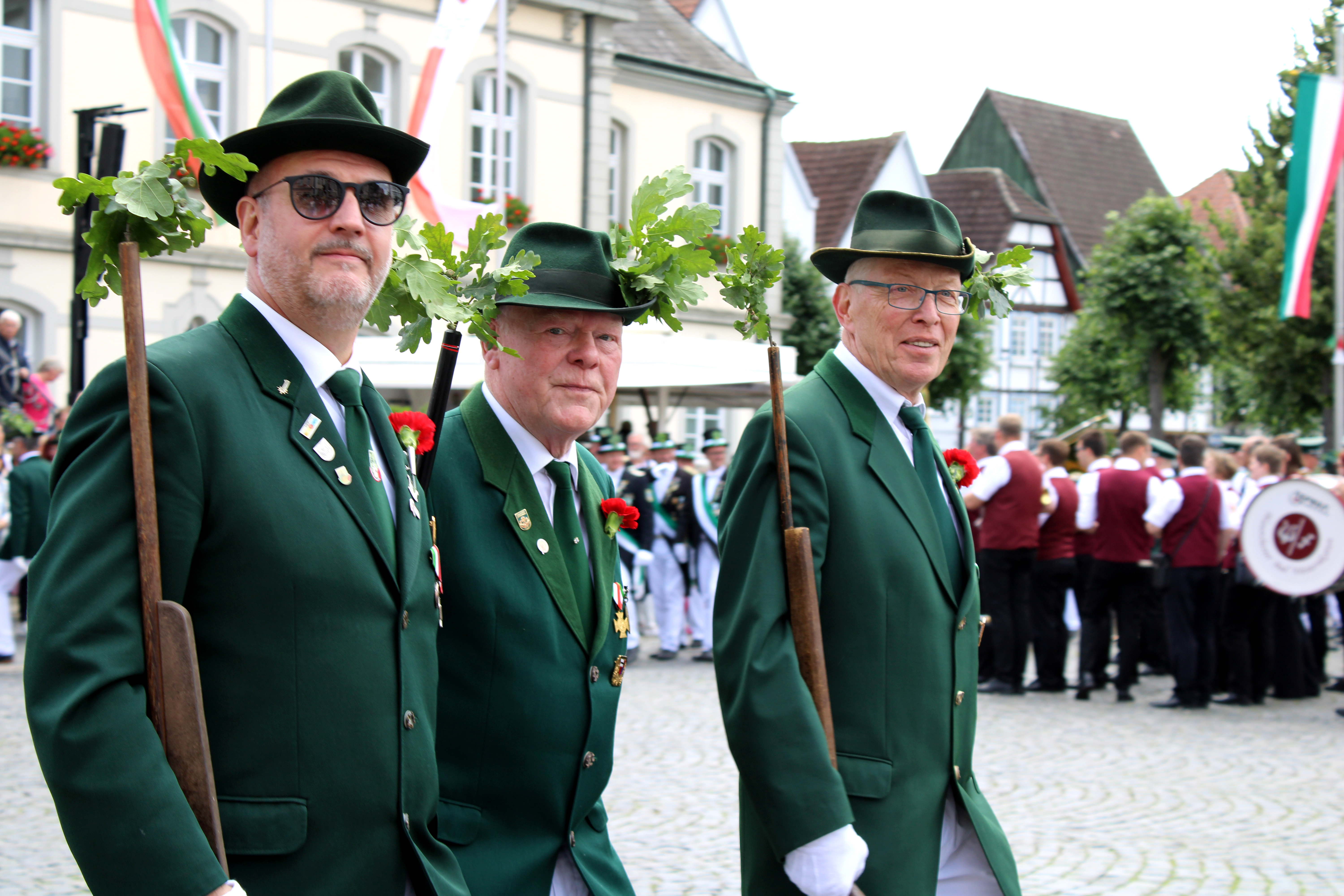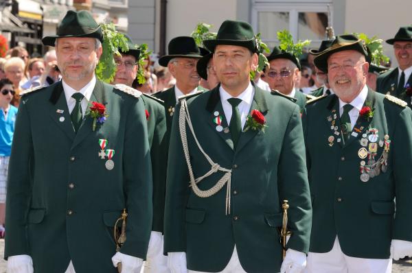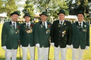 | V. l. Adjutant Diethelm Tack, Albert Dreier, Albert Pütt und Ewald Falkenstein Schützenfest 1996 |