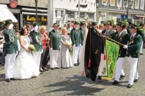 Durch eine Fahnensegnung durch Pater Norbert Ensch im historischen St. Annen Rosengarten wurde die Fahne der 2. Kompanie übergeben.